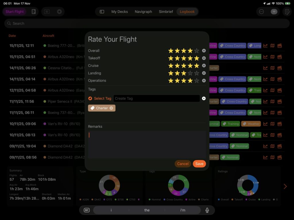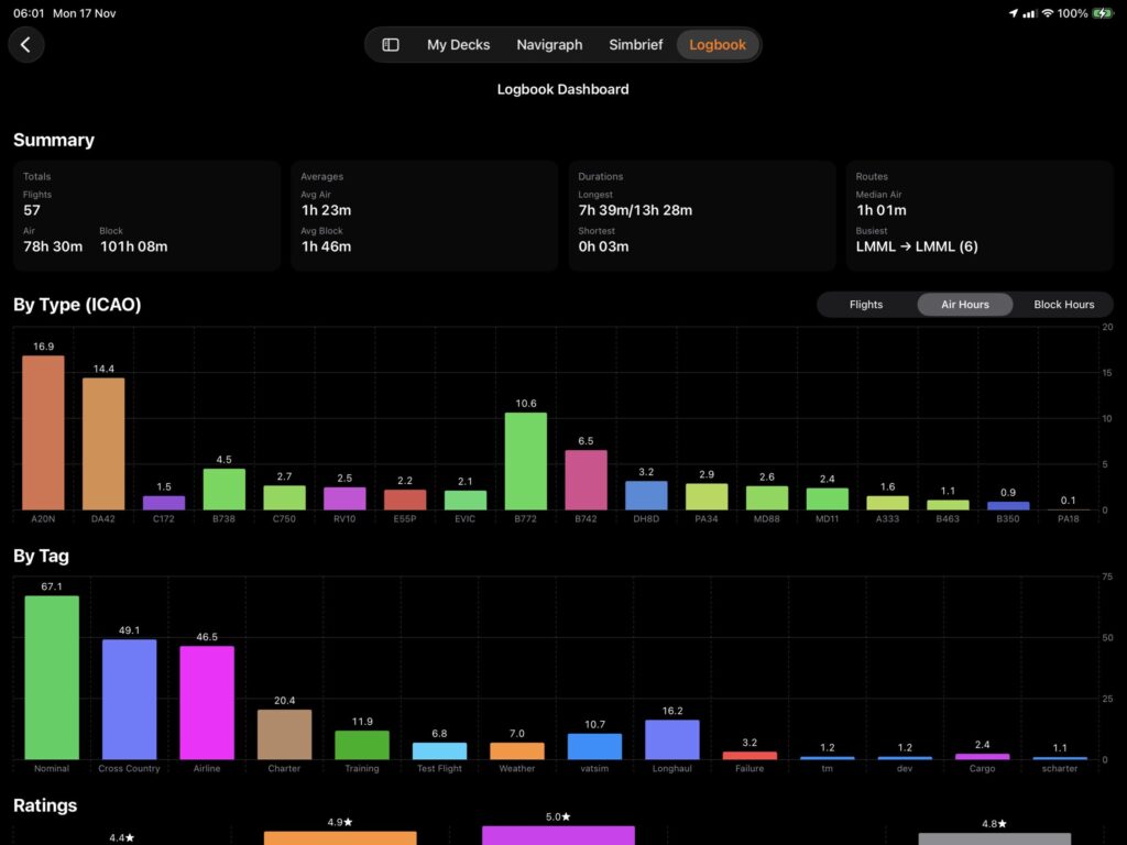 A real pilot’s logbook, automatically maintained with your flights. Export and share in the most common real-world standards, including FAA, EASA, and other international formats (CAA, Transport Canada, CASA, and more). For maximum flexibility, you’ll also be able to export to PDF and CSV/Excel, or integrate with popular digital logbooks like ForeFlight or LogTen Pro.