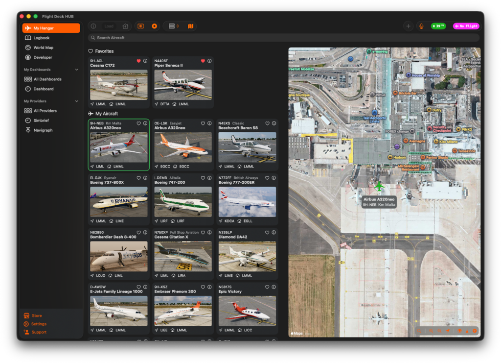 Mac users who have subscribed to the Premium plan can now enjoy the exceptional Flight Deck HUB app, a specially dedicated version of Flight Deck ONE designed to run smoothly and efficiently on macOS systems. This app allows you to manage your flight, hangar, and operations directly from your Mac, seamlessly connected to X-Plane, providing an enhanced user experience tailored to the unique features and capabilities of Mac computers.