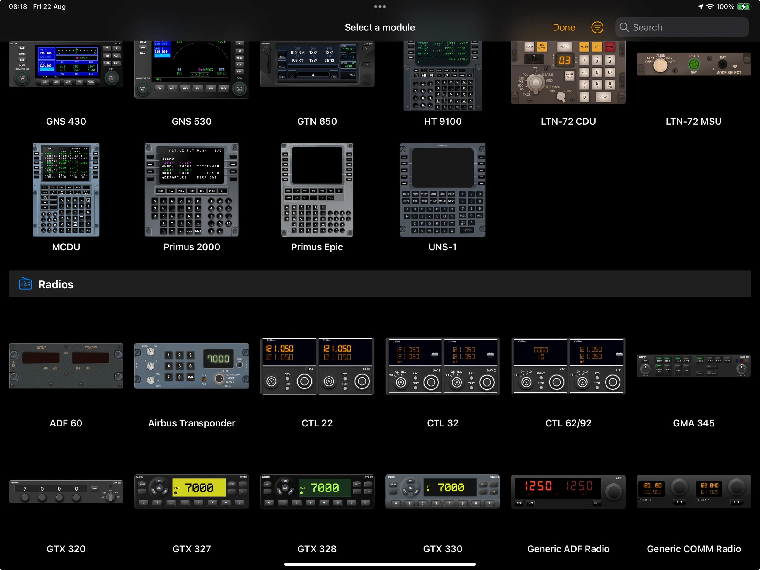 With so many avionics available, the Module Browser makes it easy to build the perfect panel. Search, filter, and explore the entire library of modules directly inside Flight Deck ONE.